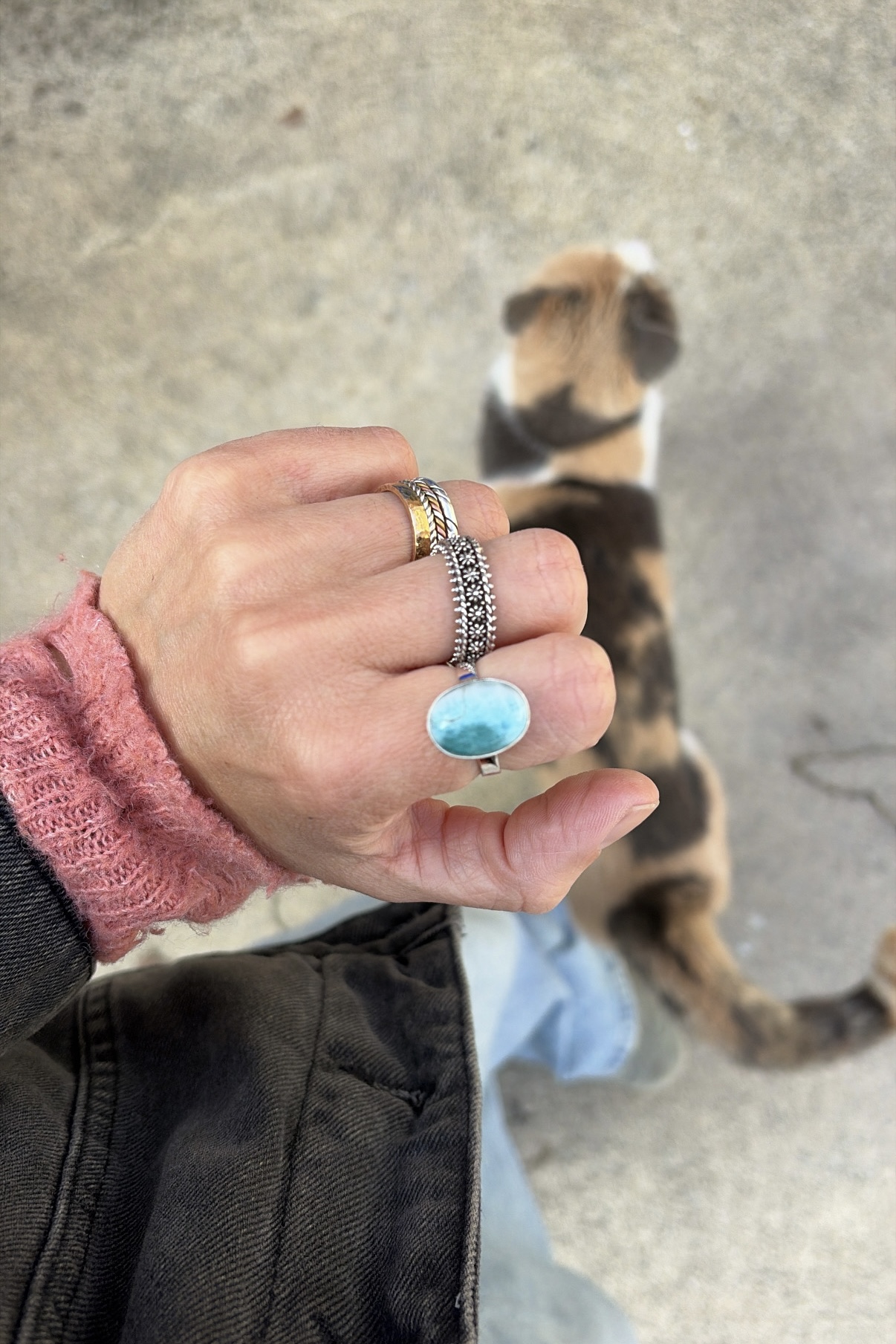 Anello in Argento 925 creato con la preziosa pietra Larimar. L’anello ha una misura unica, 15.5 mentre il diametro è 1.8 cm, us 7.25 e circonferenza 55.