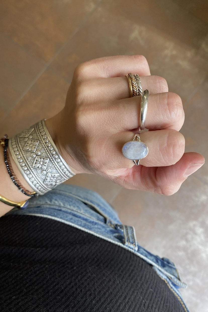 Anello in argento 925 con pietra dura a forma a ovalecon pietra di taglio liscio e a goccia e di colore cangiante, perfetto per essere sempre indossato anche a contatto con acqua, sapone e igienizzanti. Resterà sempre bellissimo!
